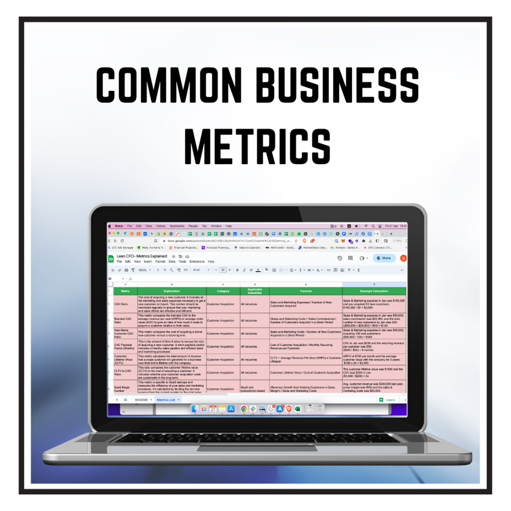 This Google Sheet lists out all the common business metrics used by companies from different industries, especially SaaS, subscription, service based businesses. It is perfect for companies or startups that closely track the business performance.